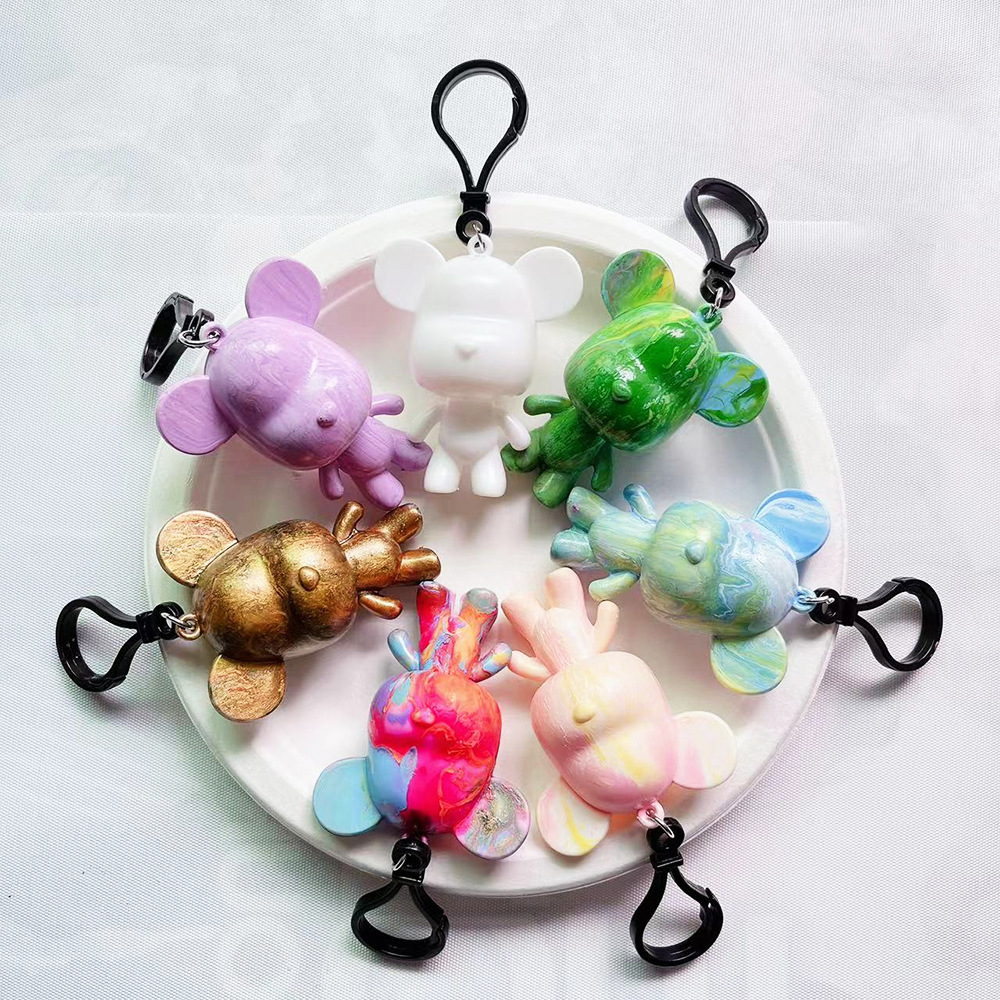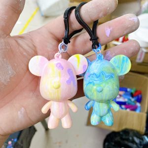 Dancing Fluid Bear Keychain, Handmade DIY Coloring Bear Head Keychain, Fluid Painting Kit for Parent-Child Bonding